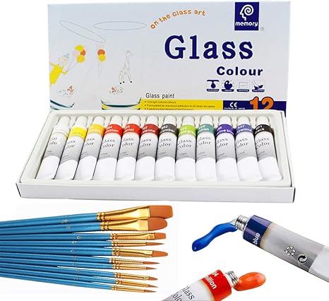 Amazon Com Vvlife Stain Glass Paint Non Toxic Window Paint Permanent Glass Paint Kit Lacquer Based For Superior Stained Glass Art Paint Glass Painting With 10pieces Round Pointed Tip Nylon Hair Brush